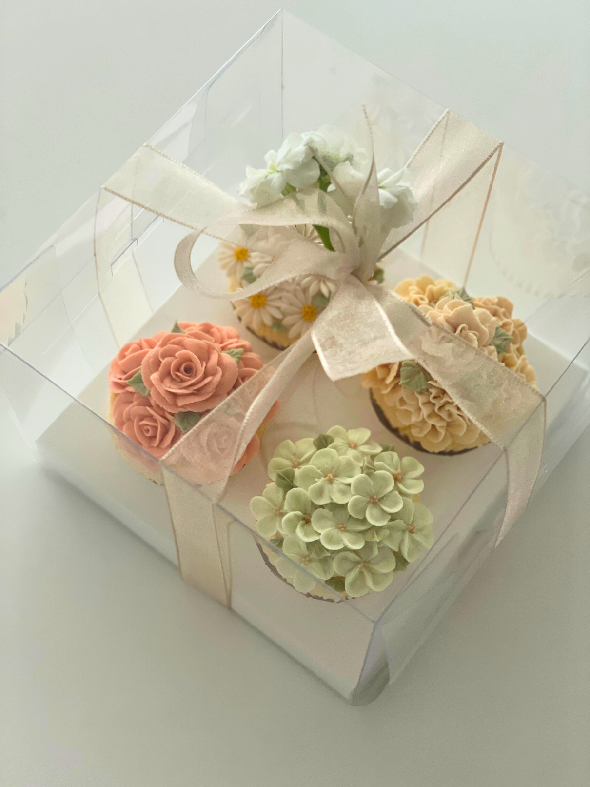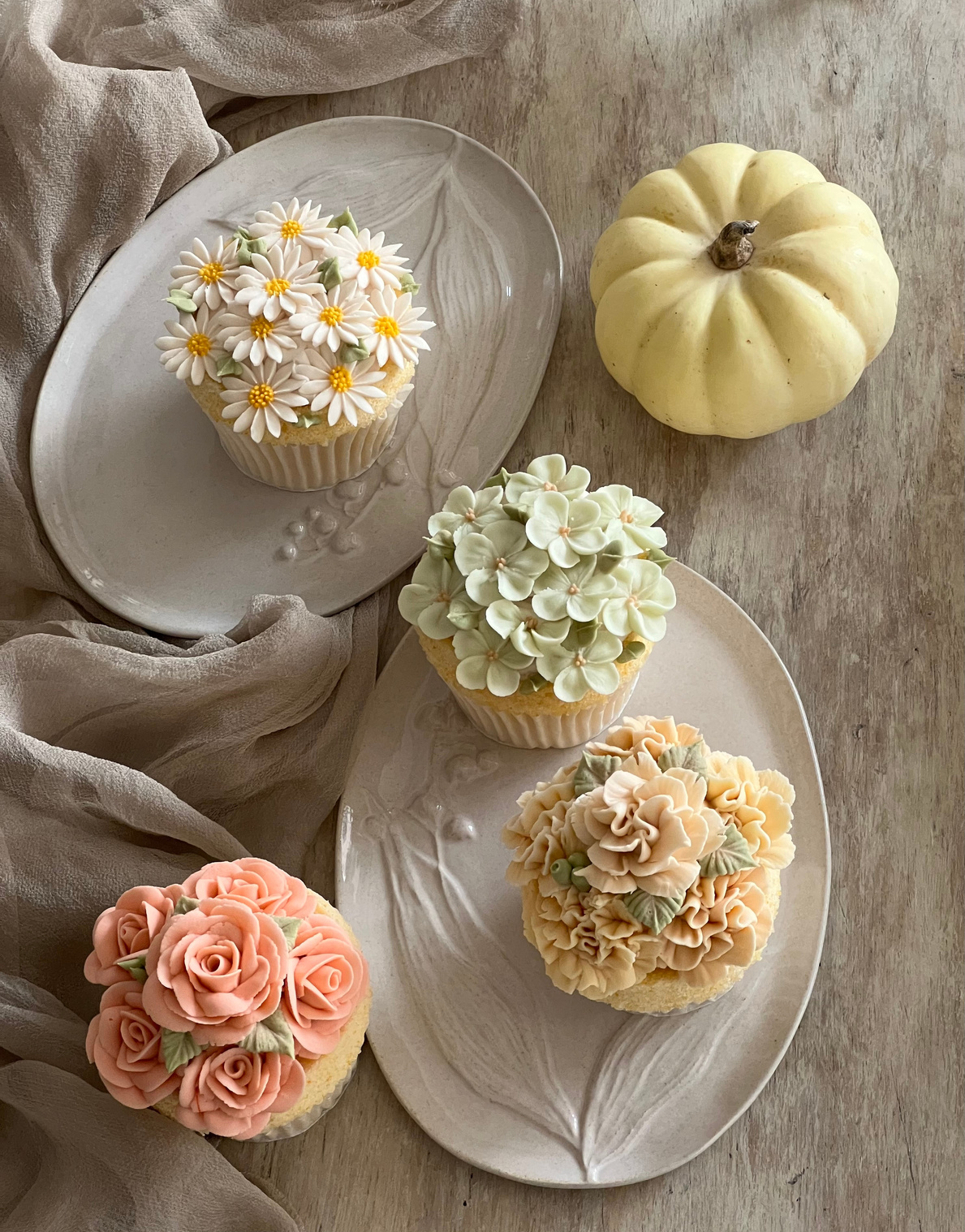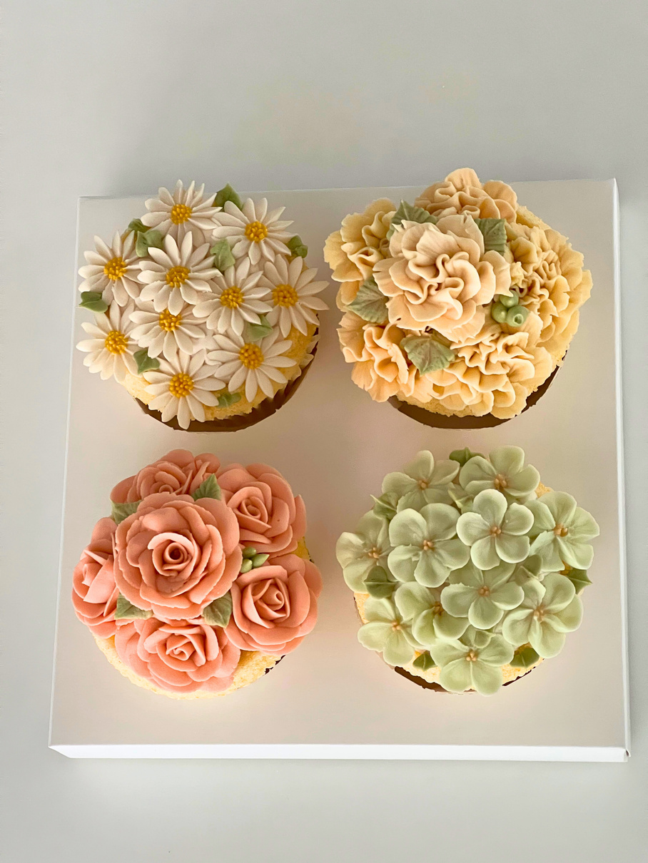 White Rice Cake is a sweet cake, but in rice cake form! It has a slightly more dry, crumbly texture than songpyeon, and more dense than a typical cake. We decorate it flowers made of frosting. Can come in either a typical cake size or cupcake size.
